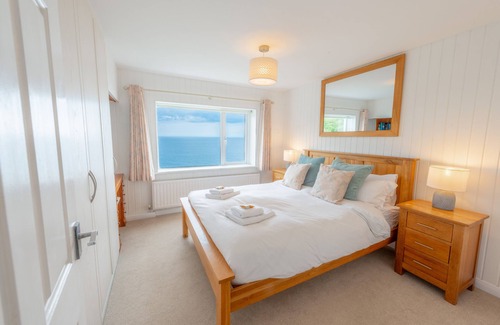 On the same corridor there is a 'rumpus room' specially for children with beanbags, games, books and TV. Down another flight of stairs is the door into the garden as well as bedroom 4 with more stunning sea views. It has a kingsize bed, a large built in wardrobe and an ensuite shower room with toilet. All the bedrooms have new carpets for 2018.