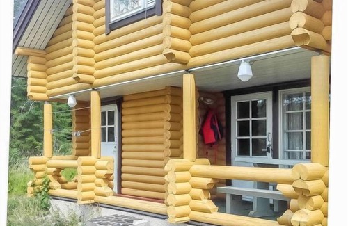 Log cabin, 1997, kitchenette, living room, sleeping loft with 2 double beds, sauna, washing room (toilet) access through porch, veranda. This rental cottage is located on a peaceful small pond. In some places, the interior of the cottage shows wear.
