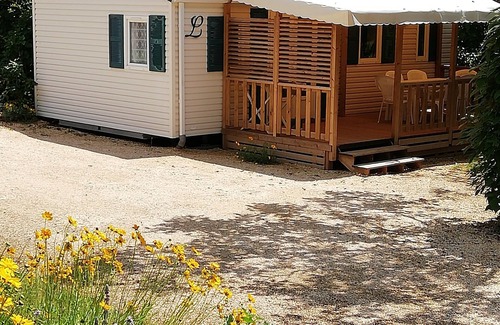 Spacious 3-bedroom mobile home with large covered terrace in the heart of the main tourist sites in the region. Located in a farm and family campsite