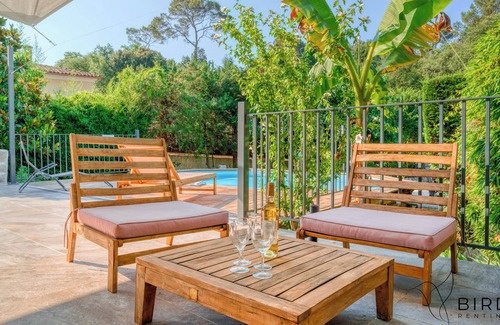 Welcome to this pretty little house just minutes from the picturesque village of Biot. It features a living room extended by a terrace overlooking the pool, a fully equipped kitchen, and two bedrooms. The first is a master bedroom, and the second bedroom has a single bed and a double bed on the mezzanine. You will also benefit from two bathrooms: one with a shower and one with a bathtub. Two to three parking spaces are available on the property. Air conditioning only in the living room which diffuses throughout the house.