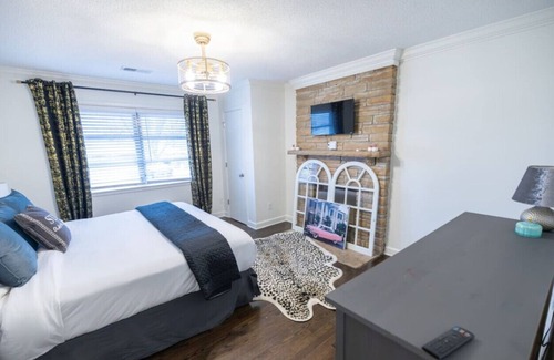 This beautiful duplex is the ideal location for those looking to visit the city of Rock n Roll! Elvis Presley's Graceland mansion is less than half a mile away! Get to the airport in 5 minutes and with the convenience of the nearby interstate, you can get to most of Memphis' tourist hot spots in 20 minutes or less! Completely renovated, super clean & cozy, with a HUGE fully stocked kitchen and tons of natural light. This unit is wheelchair accessible, and has designated parking, wifi, and more!