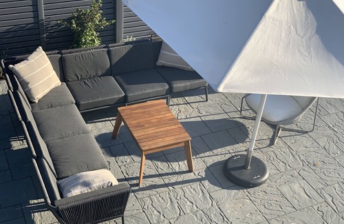Beautiful new 20’ x 16’ in-ground pool with quartz black bottom and automatic pool cover. Outdoor shower with privacy enclosure. Large outdoor sofa and chairs, chaise loungers, outdoor dining table with seating for 10 and gas grill. Pool toys, floats, and goggles are also provided. We also have a brand new Sundance hot tub that seats 5.