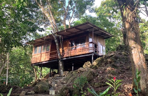Brand new cabin, in front of the sea in Playa El Almejal (El Valle- Bahía Solano). Located on a small rock which gives a spectacular view over the sea and the rainforest. Corridors between the trees, it has a full bathroom, a room with a double bed, a single bed in a social area, a mat on a guard and a hammock. Perfect location in the best area of Almejal, direct exit to the beach without walking.