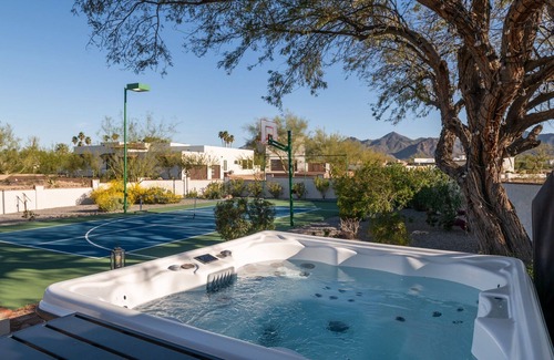 Private Desert Compound w/pickle-ball, heated pool and more! is located in Scottsdale. Private Desert Compound w/pickle-ball, heated pool and more! provides accommodation, featuring Parking, Balcony/Terrace, Internet, among other amenities. This House features Parking, Balcony/Terrace, Internet, to make your stay a comfortable one.