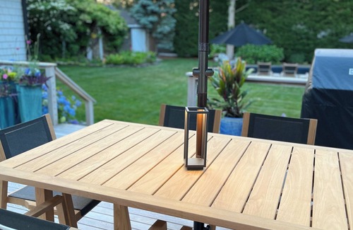 North Fork oasis tucked away on a private road. 3 bedroom 3 bath home with inground swimming pool, hot tub, full gym outdoor seating on the deck with fire table and barbecue. Last minute 4th of July week availability.