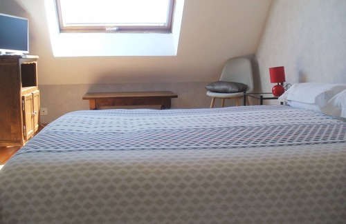 hello you will find in our main residence (AU DOMAINE DES DRUIDES), a room of 16m2 upstairs, with a double bed and a bathroom and toilet adjoining the room (reserved for you). there is a small wardrobe, a television and we provide internet free of charge. Breakfast is included in the price of the night. The arrival times are after 19:00 and for the morning departure before 8:00 for the week. For the Weekend, we are more flexible. No presence in the room during the day.