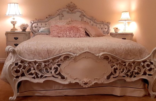 The master bedroom opens onto a large deck and boasts a large gas fireplace and king size canopy bed. Perfect for falling a sleep to the sound of waves splashing on the shore.
