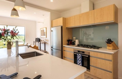 Ideally located, Putaki Bay Villas are on a beautiful estate, close to the Kennedy Point vehicle ferry, and a 5 minute drive from Oneroa Village, with its restaurants, cafes and shops. It is also very close to both Goldie and Kennedy Point wineries. You can wander down through the property to Putaki Bay beach, which is tidal but a great swimming spot for 2 hours each side of high tide, and a great fishing and boat launching spot. A 5 minute drive away are the other famous Waiheke beaches, as well as a golf course, wineries and cafes.