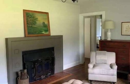 Hardwood floors, wood burning fireplace and original knotty pine kitchen cabinets make this cozy rancher an ideal space for your stay in Richmond. Located on a hill in a quiet old neighborhood, this private oasis provides a calming retreat.