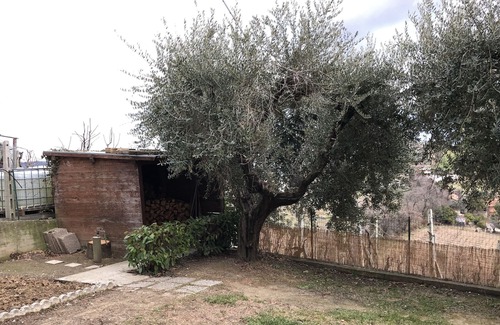 Garden of about 600m with 9 large olive trees and fully planted with flowers
