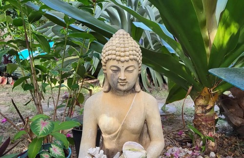 Also called The Cat House, we have 5 shy rescue cats that lounge around the garden.