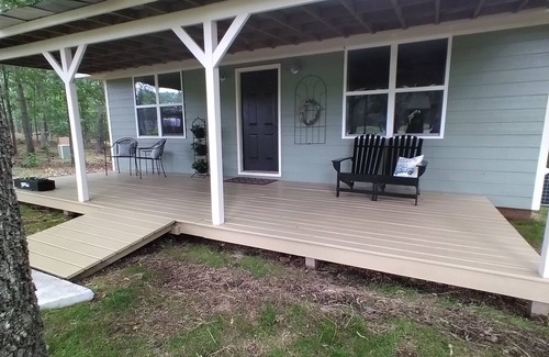 This quiet cottage is located on a small farm . Enjoy the peace and scenery of this quaint cottage. Take a break and getaway for a quiet escape from the demands of life. From entering the property on the winding drive, you'll experience the beginning of the small farm life from the cattle, goats, greenhouse and vegetable garden. With seasonal crops, you can enjoy muscadines and blueberries in abundance. Being in a secluded location, the porches offer the experiences of the sounds and sights of wildlife that only being rural can offer. The cottage alone is peaceful as the decor offers a relaxing atmosphere. Although it's rural, it's not without nearby convenient stores and eateries.