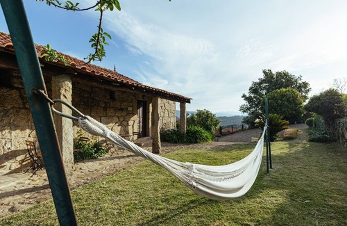 Guests share an outdoor swimming pool with incredible views over the Miño river valley and the Spanish mountains, a games room, gardens and an orchard.
