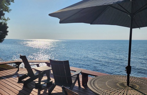 This vintage 1940's log-sided cabin is a delightful retreat year-round that feels secluded but is convenient to shopping, hiking, and skiing. The cabin sleeps 6 in 3 BRs (2 queen, 1 with twin bunks). A massive deck overlooking Lake Superior with adirondack chairs, an outdoor dining table, and a gas grill, extend the living space during warmer months. In winter, the big stone fireplace and picture windows looking over the lake make for a cozy place to snuggle up with a book, play games, or just relax after a long day of skiing at nearby Lutsen Mountain or the Sugarbush XC trail network.