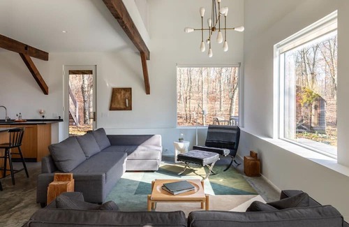 Welcome to Raven Retreat, a charming woodland escape located at the end of a tranquil rural road in Stanfordville, New York - just 2 hrs from NYC! This 2 bed/ 2 bath home offers modern simplicity and an unforgettable vacation immersed in the beauty of nature.