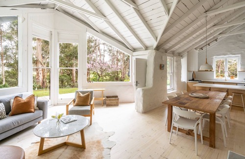 The comfortable living area features a TV with Netflix, sound system and large windows overlooking the majestic Karri trees. There is a fireplace to keep you toasty warm in winter with wood supplied and aircon/reverse cycle for the summer months.