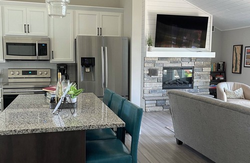Whether you're cooking in the spacious kitchen, snuggled up with a good book in front of the fireplace, or just sitting on the dock with your toes in the water, you will feel right at home during your stay, as no detail has been left out in creating this cozy get away.