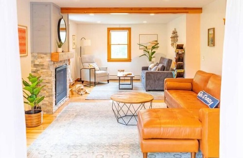 Located within just 7 minutes from Lake Winnipesaukee, Wolfeboro Center, Allen Albee Beach, and Lake Wentworth, Beach Pond Acres is your perfect year round vacation resting place. Indulge in the abundance of activities in the nation’s oldest summer resort, including fishing, water sports, and relaxing lake beaches and Gunstock Ski Resort. Enjoy the privacy of an open, cozy, and light filled home, sitting on five acres of abundant wildlife and vivid greenery. Consider Beach Pond Acres the ultimate home away from home for your family, creating the perfect indoor-outdoor living and entertaining space with screened in porch and dual French doors. Beach Pond Acres provides the right amenities for you to create the perfect ambiance no matter the season, including a Jacuzzi bath tub, fire place, two fire pits, Adirondack chairs, multiple televisions, oversize bedrooms with AC and the perfect backdrop for outdoor entertaining. Leave your worries behind and come relax in this beautiful oasis with soaring wood-wrapped grand ceilings. Beach Pond Acres is everything you didn’t know you needed and more. We do want our guests to know that the home has just two bedrooms on the second level. The master bedroom has a King size bed and a full size pull out bed. The second room is equipped with a king size bed as well as two twin beds. There is no divider between the sleeping spaces within each room so it is great for mom and dad to keep an eye on their children. There is also another pullout bed in the living room on the main floor. Guests can access the entire home with the exception of the basement. It is unfinished so there is nothing exciting you are missing out on down there. The garage will not be accessible either. We live locally and can assist with any issues on site within a few hours. Beach Pond acres is in a quiet secluded area. No neighboring homes are visible while at the house. The driveway has plenty of parking. The house is 3.5 miles from the center of downtown Wolfeboro. Be to any of the many restaurants, beaches, or attractions in under 10 minutes. The outdoor space is unbeatable. We love spending time on the covered porch at any hour of the day. The yard is huge and your group will love setting up lawn games or the kids will love using their imaginations playing among the granite boulders. And don't underestimate the moments of making s'mores around the campfire in the smokeless firepit every night after exploring Wolfeboro all day!