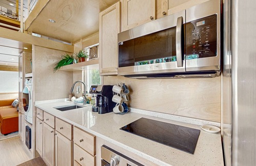 Escape to this contemporary tiny home in Colchester, VT, where open-concept living meets cozy comfort. With a loft featuring a queen bed and a queen sofa bed in the living area, this cottage is perfect for a small family or a couple's retreat. Enjoy the best spa-like amenities with an outdoor hot tub and sauna, ensuring relaxation is always within reach.