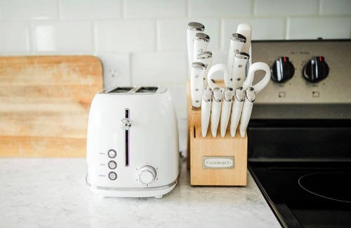 The kitchen is fully stocked for everyday meal prep. Dishes, pots and pans, silverware, glass, etc. dishwasher, and a drip coffee maker is available for guest use. Additional kitchen items include microwave and toaster. Also included: bed linens, bath towels, basic cleaning supplies, and soaps (not personal soaps), and a starter set of paper products.