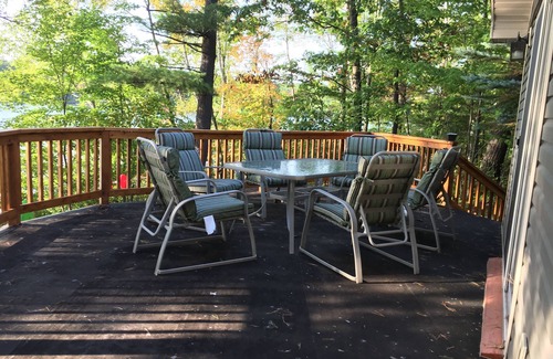 Charcoal grill available for use and table and chairs overlooking the lake for dining.