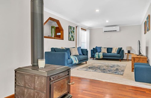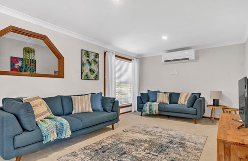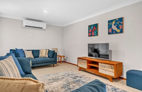 There is a large chill out area in the converted garage catering to everyone, providing a separate chill out space. Containing a comfortable lounge, board games, children's toys, and a roller door that opens to allow for a view of the fully fenced yard and garden. Sit back, relax and experience the cool Lake Macquarie breeze.