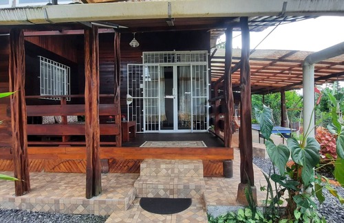 10 minutes from away from Puyo city on the Ecuadorian Amazon Region, Descanso en la amazonía (Rest in the Amazon) is a -900 m2 of peace and harmony-cottage. Here you can enjoy: Cottage / Chalet: 3 bedrooms, 3 bathrooms and a loft for 12 people, garden with mountain view; bird watching; walking trails; creek; equipped kitchen; hall / hall BBQ; hammocks; stove; Camping Area; stellar viewpoint; indoor and outdoor dining, cable TV; Free WIFI; garage for 3 vehicles (3 more outside the property); pets allowed; We speak Spanish, English and Quichua . We also offer tourist guide and laundry service (prices are not included)
