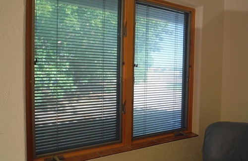 For flexible comfort, there are two high-quality futons crafted by The Futon Shop in California — one queen, one single — made with natural, non-toxic materials. Leather recliners in both the bedroom and living room invite deep rest.