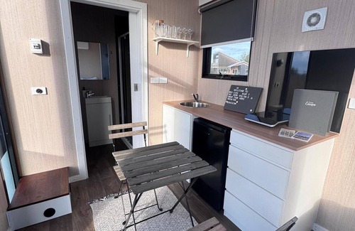 A cozy 139-square-foot tiny home overlooking a UNESCO wetlands reserve, adjacent to our biodynamic farm. Complete with easy access to water, split air conditioning, a kitchenette, cooking equipment, and excellent bathroom facilities. These amenities include an eco-friendly cassette toilet with a removable waste holding tank, hand basin, and gas-heated shower.