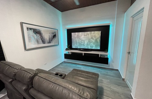 2 GUESTS, KING SIZE MEMORY FOAM BED, RECLINER LOVE SEAT, FULL KITCHENETTE, FULL BATHROOM, 65” TV,PATIO, GRILL, OUTDOOR FURNITURE & OUTDOOR DINING, WIFI