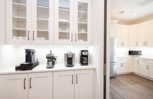 -- Chef's kitchen and prep kitchen in Great House- additional fridge, storage, caterer's door, and prep spaces