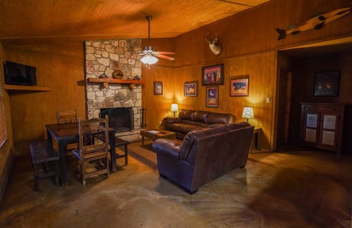 River Front cabin with access to shared pool! is located in Sabinal. River Front cabin with access to shared pool! provides accommodation, featuring Air Conditioner, Security/Safety, Fireplace/Heating, among other amenities. This Cabin features Air Conditioner, Security/Safety, Fireplace/Heating, to make your stay a comfortable one.