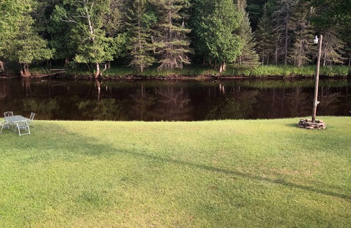 Your Upper Michigan adventure begins at this Custom River Front Log Cabin located in a 2 acre lot. This cabin accommodates up to five guests, with a master bedroom that sleeps two, and 3 twin beds all located upstairs in a loft. With a cozy living room, full size kitchen, two beautiful decks facing the river and the woods, guests can relax after a day of exploring. The property also offers heating and a washing machine for convenience. Two kayaks are available for guests to enjoy the river. We think our place will help you experience everything Cornell has to offer.