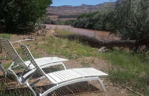 On the Colorado river, a place removed yet close to town. Beautiful location with stunning views of the river and Grand Mesa from the porch. Enjoy this natural and tranquil setting within walking distance to town. Light bathes the living room with a direct view of the river only 100 ft from the door.