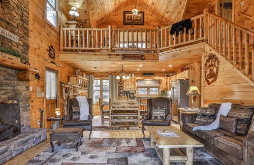 This luxurious cabin is a one of a kind marvel directly on the Cartecay River for fishing and tubing on this amazing river. Perfect getaway for one couple, two couples, three couples, families and friends!! With 3 seperate levels, each equipped with bedroom, bathroom, and living areas. You can enjoy each others company for meals then retreat to your respective levels for privacy if preferred. Life is better at a cabin in the mountains, especially when it is located on the Cartecay River.