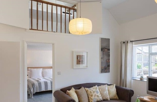 A lovely self contained annex cottage attached to the main Farmhouse in Oving village. The open plan living, dining and kitchen area has a great airy feel with it's high ceiling and is beautifully finished. The kitchen is well equipped with modern appliances. The large master bedroom offers a comfortable King Size bed, full wall fitted wardrobes, vanity table and luxurious White Company bed linen. The bathroom has a fitted shower over the bath to soak away the day. A stair ladder off the main living space leads to a further mezzanine level containing two single beds - perfect for two extra adults or children aged over 7 years (due to steepness of stair). Also Ideal for a couple with a baby to occupy the master bedroom with travel cot. Secluded location off road, with ample parking for up to 2 cars just outside.