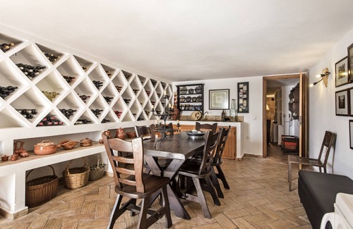 The spacious living room is equipped with a television and international channels, providing moments of leisure. The fully equipped kitchen allows for preparing meals with great convenience, maintaining a touch of authenticity. Outside, the typical local elements create a welcoming space to contemplate the landscape, while the patio is ideal for outdoor dining. The shared pool, surrounded by a well-maintained garden and with a covered seating area, is perfect for refreshing on hot days. For the little ones, the swing and slide ensure fun. Outdoor parking is also available. For special moments, the house also has a wine cellar, accessible under specific conditions presented at check-in.