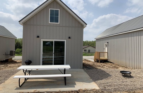 This is a cozy cabin, but has enough space for the whole family. Totaling 800sq ft of living space, it has been thoughtfully designed with an open concept and efficient use of the floor plan. It has a master bedroom with a queen bed on the main level and a loft with 3 single beds. The main living space of the cabin is the fully stocked kitchen, dining area and living room that is open concept design. Out the back is a concrete patio and fire pit. These cabins are new builds, with brand new appliances and accommodations. This getaway is built as close the Lake as Mark Twain allows and is centrally located to all it has to offer! Just up the road is the dam and Black Jack Marina. Also located around 2 miles from Jellystone waterpark. These cabins are the perfect place for a family to spend the week at Mark Twain Lake!