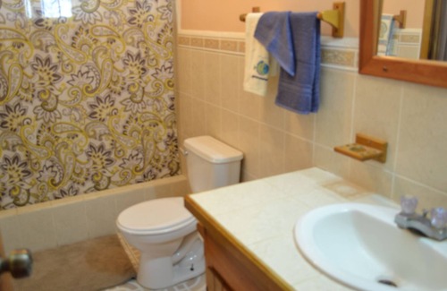 This unit, on the bottom floor of the Beach House, sleeps 4 guests in 2 bedrooms, with one bathroom and a large and open living area that includes a fully equipped and stocked kitchen. And, of course, walk-out access to the sea and beach!
