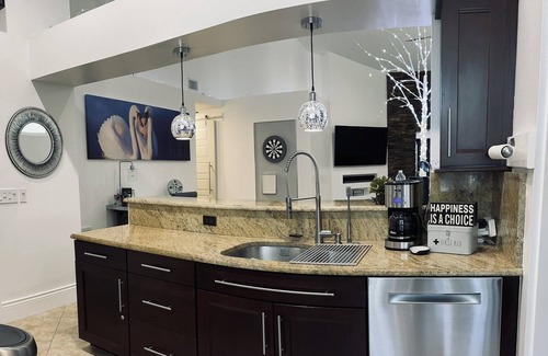 Enjoy our pool oasis on Swan Lake with hot tub/pool, miniature golf, backyard kitchen, comfy beds, massage chair and fountain views! Our home features a shuffleboard table, dartboard, Scrabble board and smart TVs in all the rooms! Host/Owners are occasionally in town and have a private room and private side of house entry. Shared backyard kitchen and access to feed swans! Please note only registered guests are aloud to be at the home. No parties or events without the owners approval. No Smoking and No Pets are aloud inside of home. County Noice Ordinance 10pm to 8am inside and outside of house. Please be respectful of our home and our neighbors. We are ok with small gatherings with advance notice and approval of guest count. Notify owner of anything you need….we try to accommodate and hope you enjoy the Oasis as much as we do :) Hot tub fee applies per night, additional $30 for 4 hours per use.