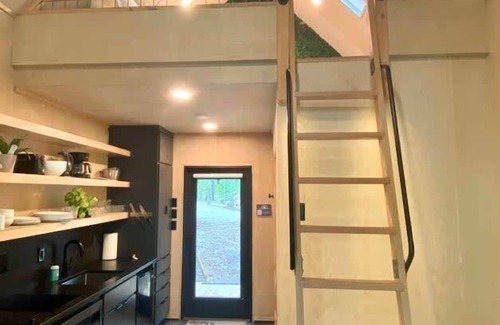 Perched in 30 acres of Monteagle Mountain’s vibrant "bio-gem," this Scandinavian-inspired treehouse at Terralodge is a modern masterpiece! Adorned with West Elm furnishings and a queen pull-out sofa with 5" memory foam, it sleeps extra guests comfortably. The loft, reached by a white oak ladder (may challenge elderly/disabled), features a plush king bed with luxury hybrid mattresses,. Enjoy fiber WiFi, a 55" 4K Smart TV, wood-burning stove, and in-floor radiant heating.
