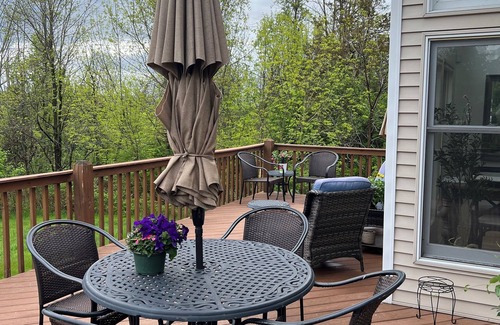 Enjoy a peaceful walk to the lake which is downhill on a private gravel road (1/10 mi). Perfect setting for fishing, swimming, kayaking or sipping wine with a good book!