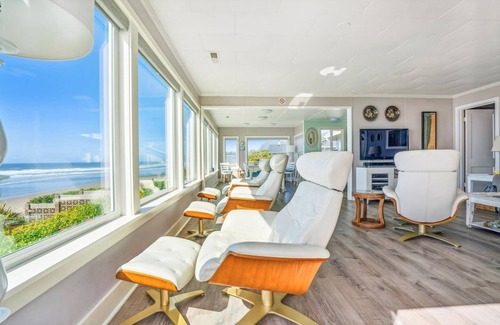 The living room includes a beautiful stone fireplace, plenty of comfortable seating and has access to a large oceanside deck for enjoying those beautiful sunsets! The fully stocked kitchen provides all the amenities you will need to prepare gourmet meals, all while enjoying views of the Pacific Ocean. A sunporch, just off the kitchen, is a great place to store sandy shoes and toys after a day of play on the beach!