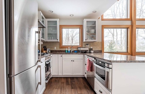 In the morning you might find yourself perched on the stools at the breakfast bar, sipping your coffee while your companion prepares a feast, which is comfortably prepared in the well-equipped kitchen. Go into full relaxation mode and chill on the sectional for movie night (the living room boasts a large, flat screen Smart TV with cable) or get some fresh air and head out to the myriad New York State hiking trails in the area.