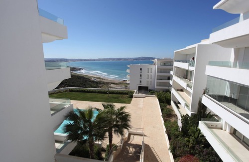 Very beautiful 134m2 furnished apartment for rent in the Cap Tngis residence, 5 minutes from the city center in a quiet residence on the Mediterranean coast.