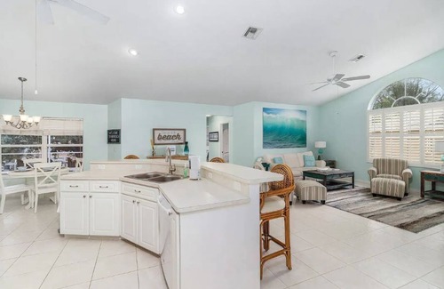 Outstanding 4 bedroom, 2 bath Waterfront Villa with Heated Pool & Jacuzzi. Come enjoy your vacation in SW Cape Coral where you will be close to everything! Our home sits on a gulf access canal, perfect for fishing off the dock. You'll be walking distance to the local coffee shop Tony & Ada's along with Fellowship Park.
