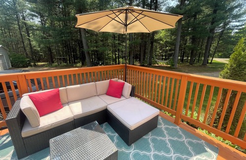 Escape to your own private retreat on this secluded 5-acre forested property. This cozy two-bedroom, one-bathroom home offers peace and tranquility surrounded by nature. Enjoy the spacious deck and patio, perfect for relaxing or entertaining, complete with an outdoor fireplace for chilly evenings under the stars. Starlink internet service provides fast and reliable Wi-Fi, making it ideal for guests staying at our getaway home, even in remote locations. We are located 20 minutes from Wisconsin Dells.