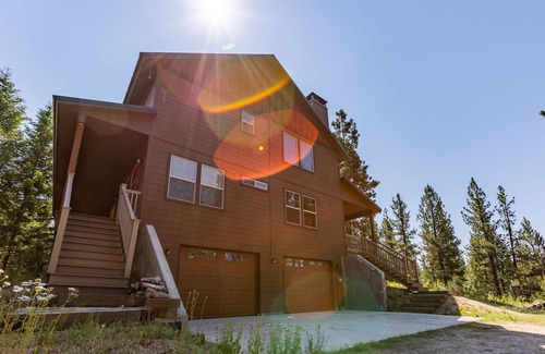 Secluded cabin on over 6 acres of personal forest. Just 2.5 miles off the main highway and only 10 minutes to Cascade. 2 bedrooms 2.5 bathrooms. Vaulted ceilings and large loft with queen bed and hide a bed. Big laundry room for changing into snow gear to enjoy the private sledding hill. After sledding enjoy the warmth and sounds from the wood fireplace. Make memories playing games around the kitchen table or outside on the covered porch. 2 car garage available for parking. Great cell service for Verizon and ATT. High speed Starlink internet. Driveway is plowed in the winter. 4x4 or AWD is still recommended!