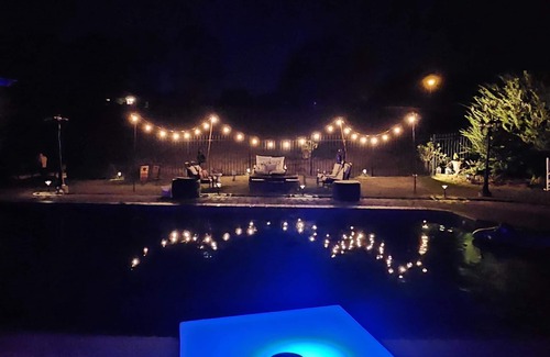 Engage in fun or relaxation in our expansive 20 x 40 pool, ranging from 3 to 7 feet in depth, perfect for a refreshing swim or leisurely soak. Adjacent to the pool, unwind on the back porch where you'll find our inviting salsa hot tub, offering soothing warmth and rejuvenation amidst the scenic surroundings. Enjoy al fresco dining in the charming dining area on the back porch, overlooking the serene gardens. Our backyard area includes tables and chairs, lounges, outdoor spaces for sport, and an egg-style grill for culinary adventures. Please note our property policies: strictly no smoking or drugs, and we kindly request respectful behavior, avoiding nudity, drama, or loud noises. Rest assured, owners are present on the property but respect your privacy, with no access to guest spaces and vice versa. Your peaceful retreat awaits, where relaxation and enjoyment harmonize effortlessly.