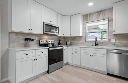 Walking in you will be amazed by the fully renovated appearance of the home and greeted by a living room with plenty of seating and a smart TV to watch all your favorite shows and movies. To the left of this room, you will find the kitchen and dining rooms. In this kitchen, you can find all of the utensils and appliances that you would need to cook your favorite meals including all new stainless steel appliances. In the dining room you can enjoy your meals at a table which fits 6 people.